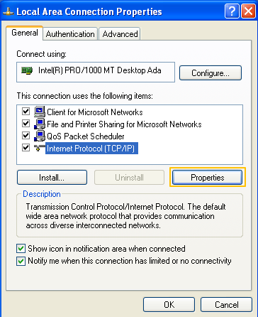 Select Internet Protocol version 4 (TCP/IPv4) → Properties.