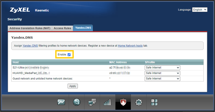 Yandex DNS is built into Zyxel routers. It can be configured for individual devices or for all devices at once.