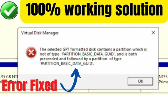 the selected gpt formatted disk contains a partition which is not of type 'partition basic data guid