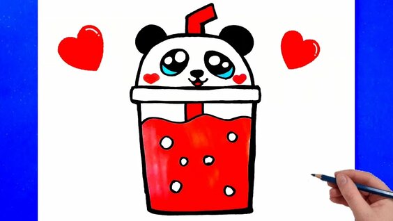 Sevimli Çizimler - Panda Çizimi - Milkshake Çizimi - Kolay Çizimler - Sevimli Resim Çizimleri