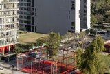 Buenos Aires'teki Olimpiyat Mahallesi'nde, 2018 Gençlik Olimpiyat Oyunları'nın ardından konut alanlarının çevresinde yeterli kamusal alan bulunmadığı görülüyor. Bu ihtiyaca yanıt olarak geliştirilen proje, boş bir arsayı mahalle ölçeğinde sosyal buluşma alanına dönüştürerek kamusal yaşamı güçlendiriyor. Meydan, çocuklar ve gençlerin katılımıyla yürütülen bir tasarım süreci sonucunda şekilleniyor ve dinlenme, spor, oyun için erişilebilir açık alanlar sunuyor. Tasarımın ana unsuru olan kırmızı metal boru yapıları hem oyun elemanlarını taşıyor hem de mekânsal düzeni tanımlıyor. Kullanılan beton oturma elemanları ise alanı sınırlandırmadan dinlenme olanağı sağlıyor. Yerel bitki türleri ve gölgelik alanlar mikro iklimi iyileştiriyor ve kamusal kullanımı destekliyor. Proje, dayanıklı malzeme kullanımı ve açık mekân organizasyonu ile bölgedeki kamusal yaşamın sürekliliğini sağlıyorArchitects: Región Austral📷: Luis Barandarián