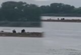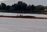 Sakarya'da bulunan Sapanca Gölü'nde kuraklık nedeniyle sular çekildi. Su seviyesinin düşmesi nedeniyle göldeki tarihi taş kalıntılar tekrar ortaya çıktı. Ellerinde kazma ve küreklerle bölgeye geldiği değerlendirilen ve merak uyandıran 3 kişi kamera ile görüntülendi.