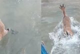 Elazığ'da Keban Baraj Gölü'ne düşen dağ keçisi, teknedeki balıkçılar tarafından kurtarıldı.
