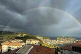 Bartın’ın turistik ilçesi Amasra’da günlerdir devam eden yağmurun ardından açan güneşle birlikte ortaya çıkan gökkuşağı, kartpostallık görüntüler oluşturdu.